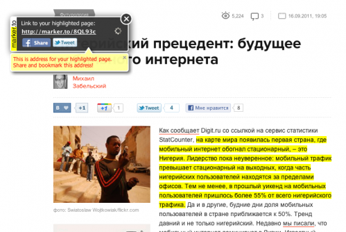 Как переслать ссылку на статью с выделенным текстом
